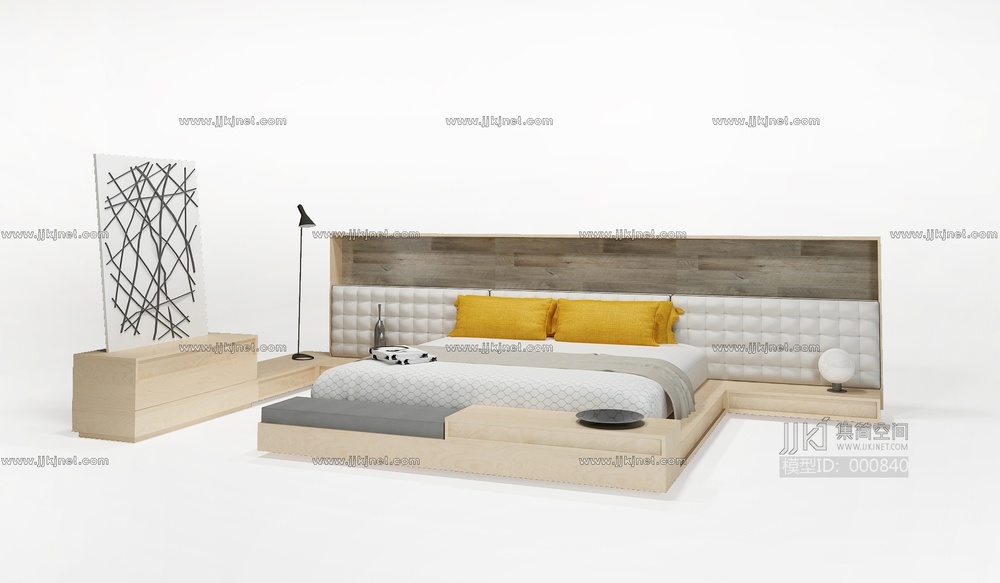 13-现代轻奢双人床_布艺_皮质_轻奢双人床集合3D模型3d模型下载