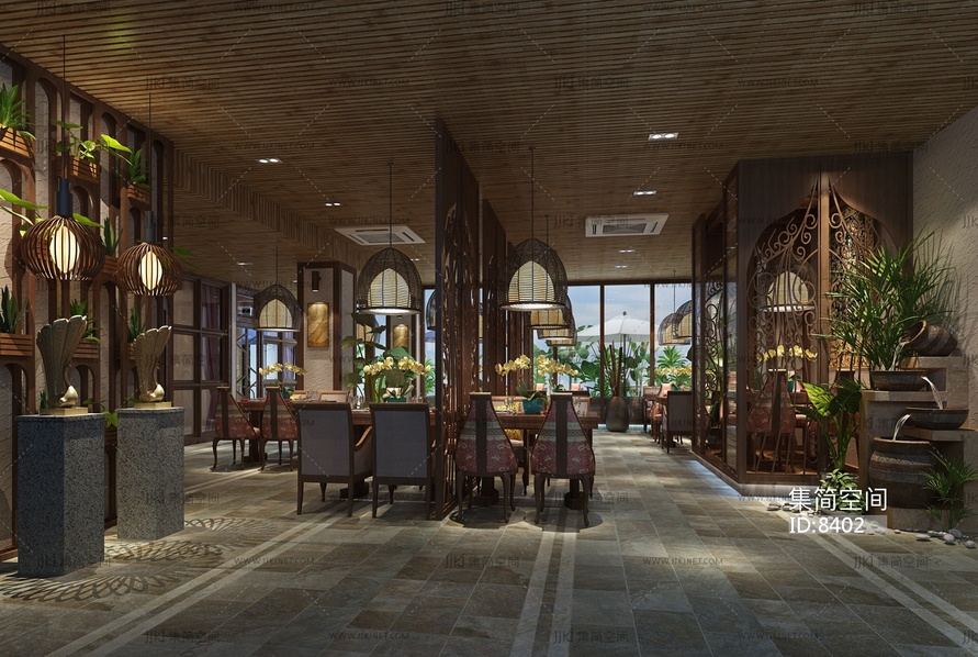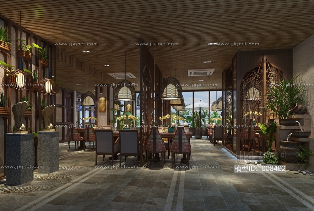 034-1022东南亚餐厅水景 3d模型下载 [模型ID:8402]