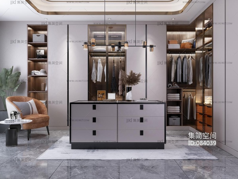 现代衣帽间,衣柜,单人休闲椅 3d模型下载 [模型ID:84039]
