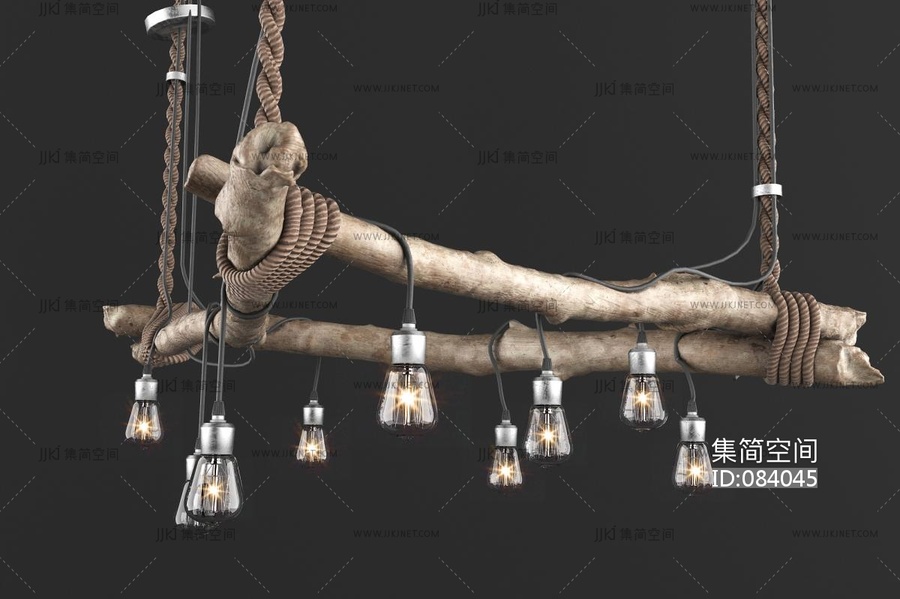 工业LOFT树枝,麻绳灯泡吊灯 3d模型下载 [模型ID:84045]