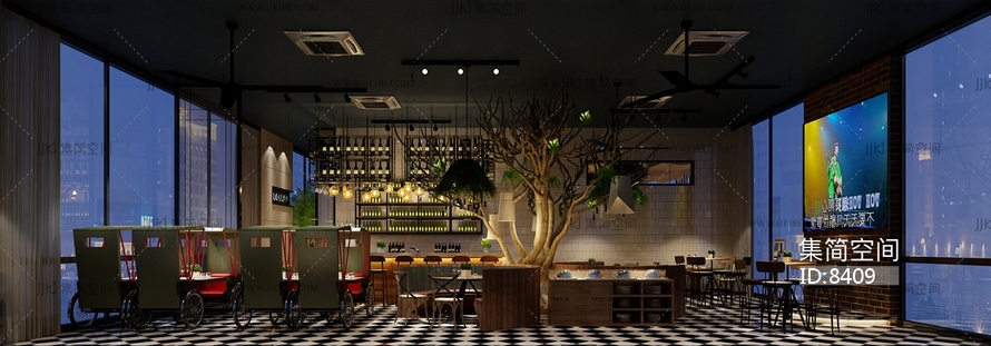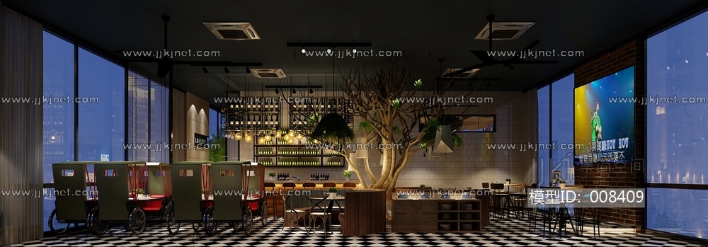 042-1022工业风餐厅干枝树 3d模型下载 [模型ID:8409]