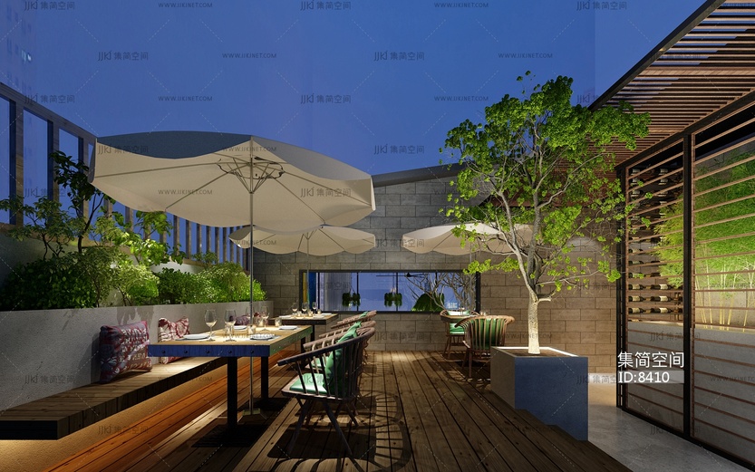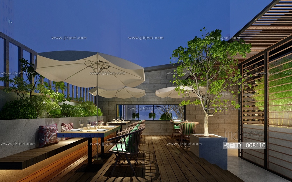 043-1022工业风露台餐厅植物树 3d模型下载 [模型ID:8410]