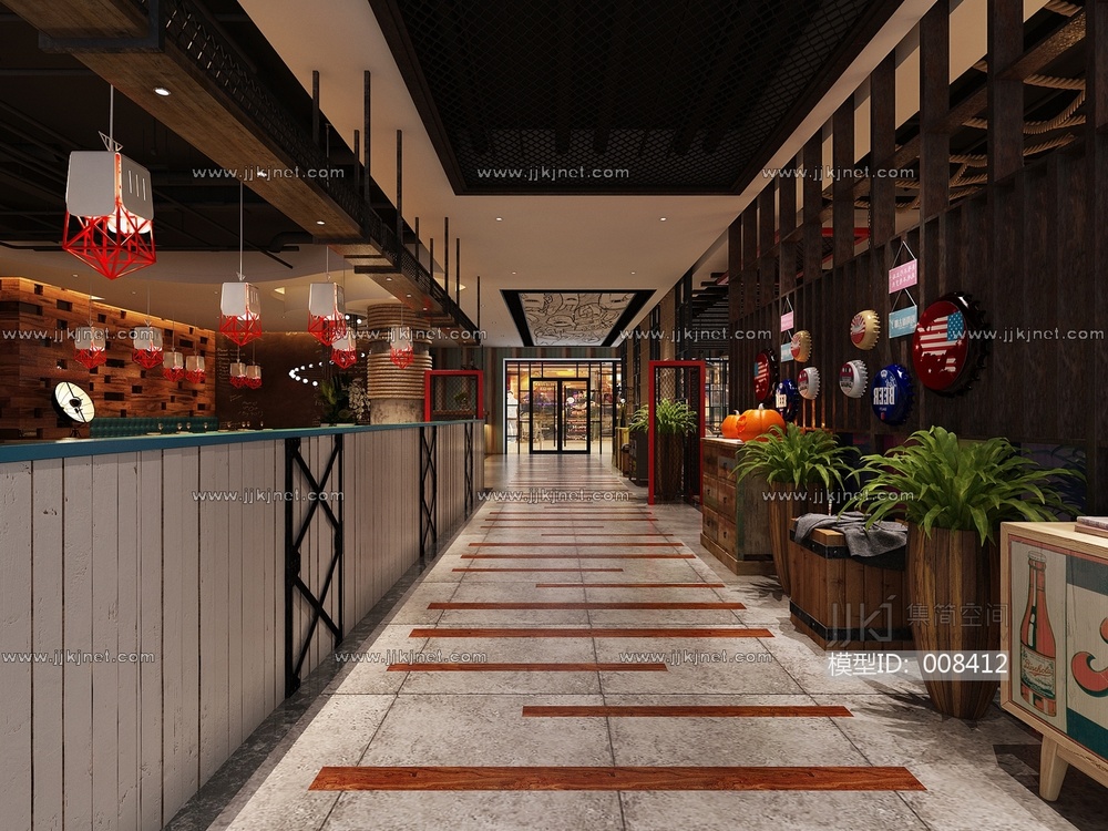 045-1022工业风餐厅走廊 3d模型下载 [模型ID:8412]