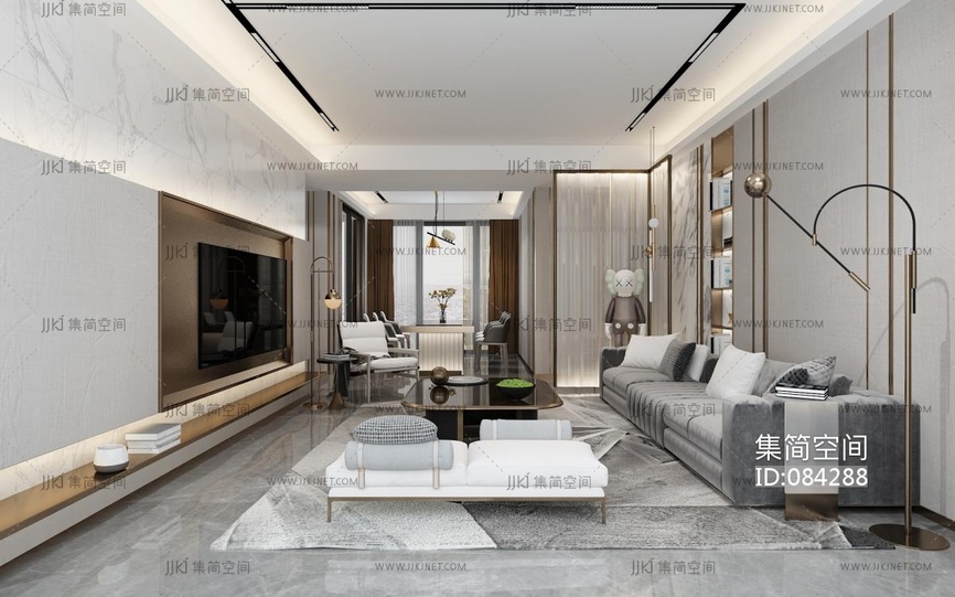 现代客厅餐厅,沙发茶几 3d模型下载 [模型ID:84288]