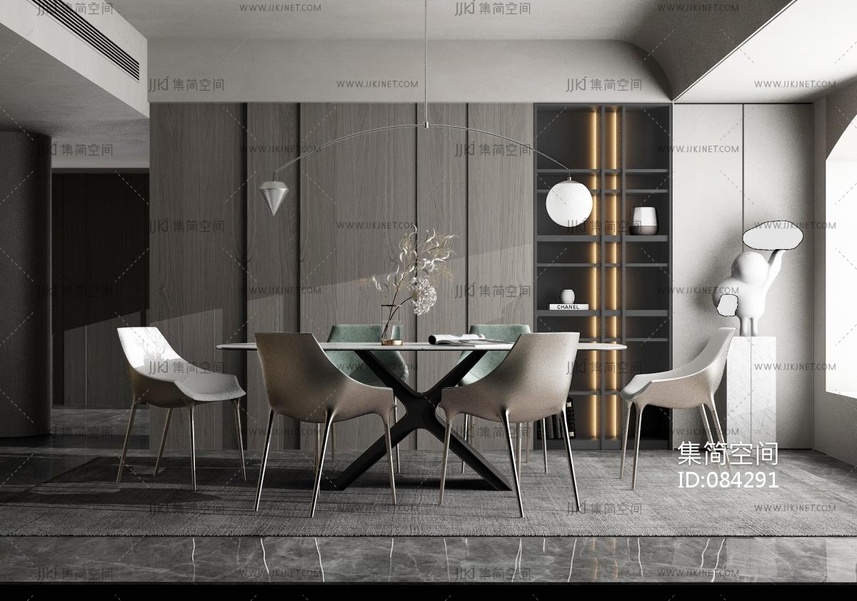 轻奢餐厅餐桌椅抽象人物雕塑摆台 3d模型下载 [模型ID:84291]