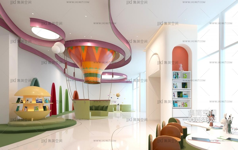 现代售楼处儿童游乐区座椅热气球, 3d模型下载 [模型ID:84324]