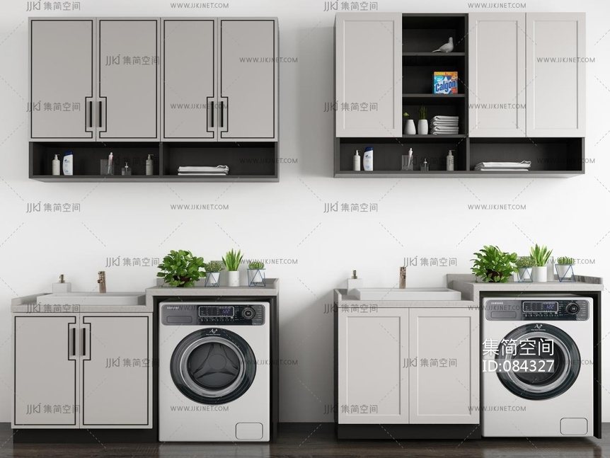 现代阳台洗衣机洗手台伴侣吊柜洗衣柜 3d模型下载 [模型ID:84327]