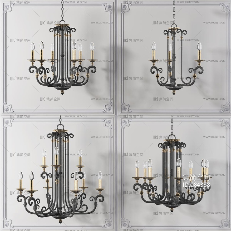 美式欧式法式金属铁艺吊灯 3d模型下载 [模型ID:84338]