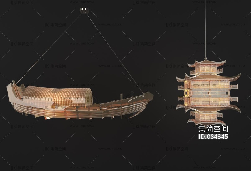 新中式古建,船型,木船吊灯雕塑 3d模型下载 [模型ID:84345]
