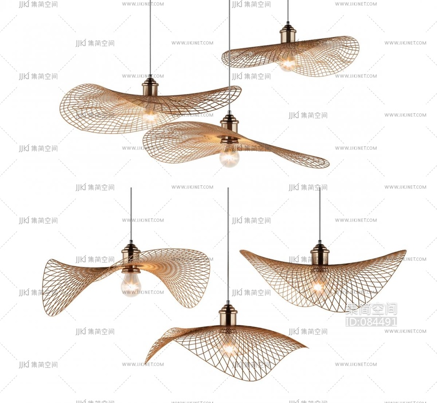 新中式帽子竹编藤编编织吊灯 3d模型下载 [模型ID:84491]