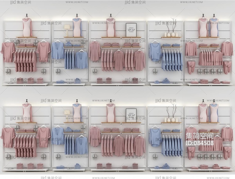 现代服装店货架衣服置物架,模特 3d模型下载 [模型ID:84508]