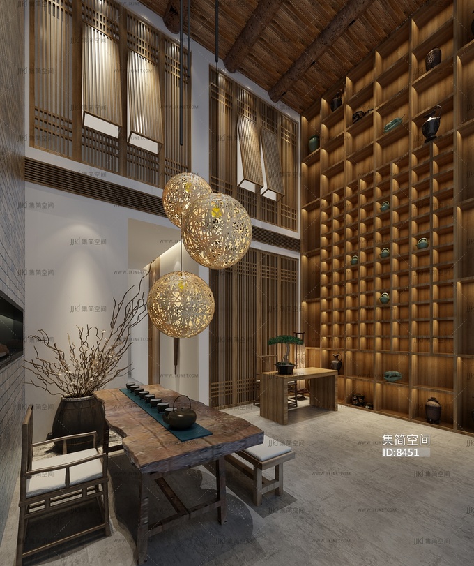 215-1022新中式茶室 3d模型下载 [模型ID:8451]
