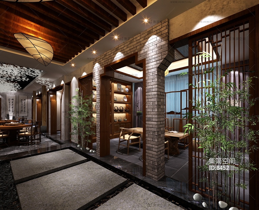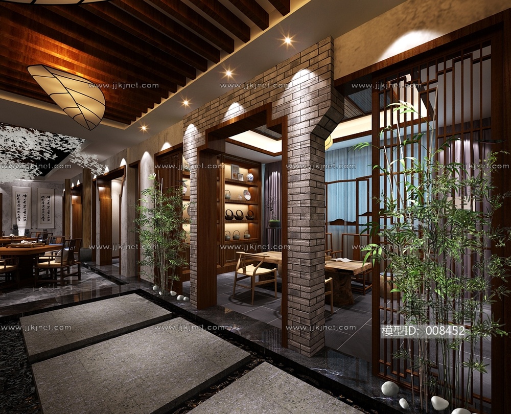213-1022新中式茶室茶楼 3d模型下载 [模型ID:8452]