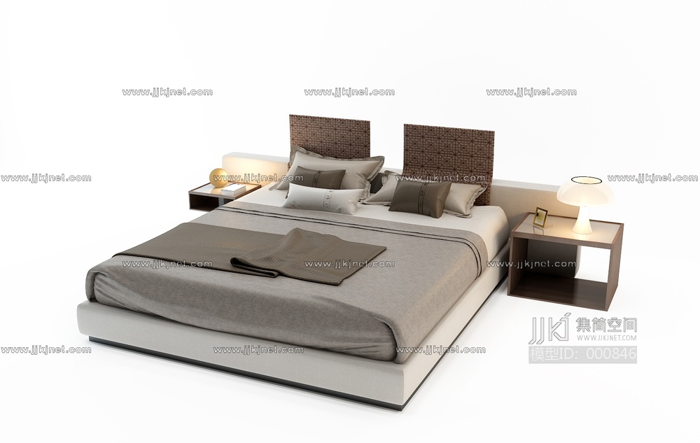 26-现代双人床_主卧床_布艺床3D模型93d模型下载