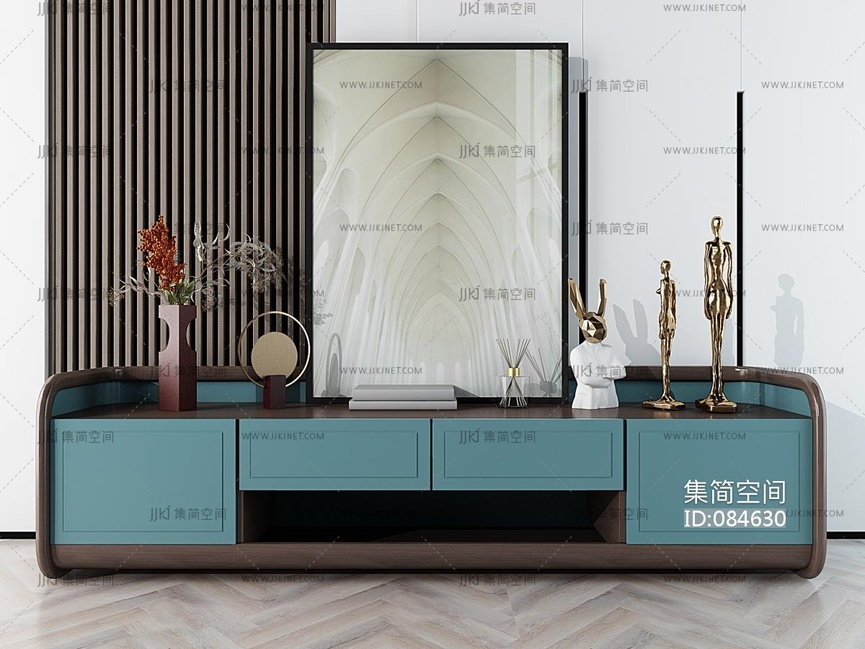 现代电视背景墙,满墙电视柜,电视机,储物柜,饰品摆件3D模型3d模型下载