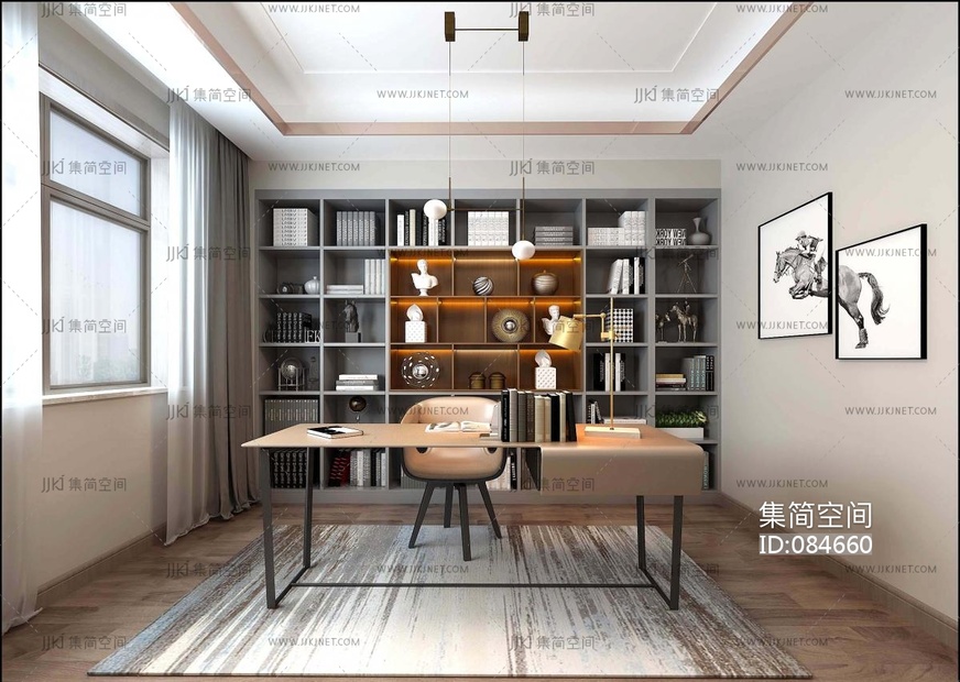 现代书房,书桌椅 3d模型下载 [模型ID:84660]