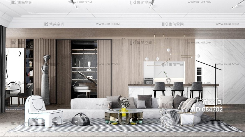 客餐厅,转角沙发单人椅子吧椅 3d模型下载 [模型ID:84702]