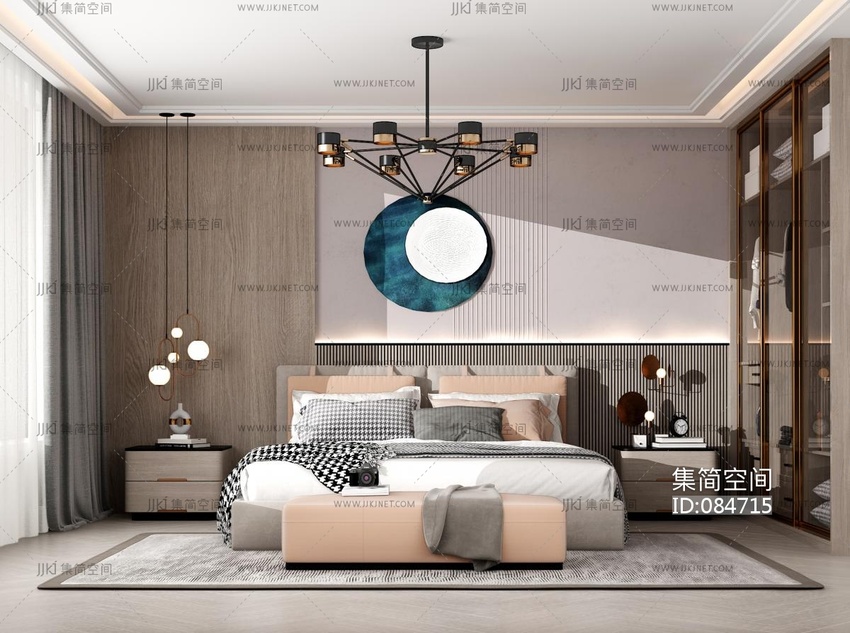 现代卧室,双人床床头柜,衣柜 3d模型下载 [模型ID:84715]