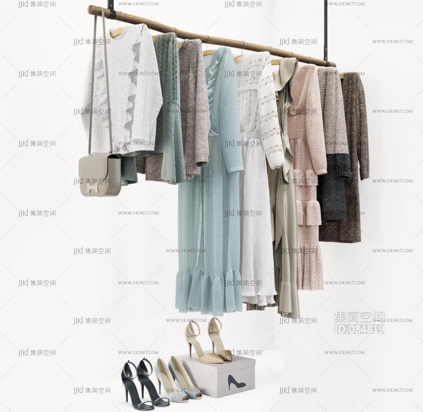女性服装店衣架 这个模型不显示贴图但是能渲染出来 3d模型下载 [模型ID:84819]
