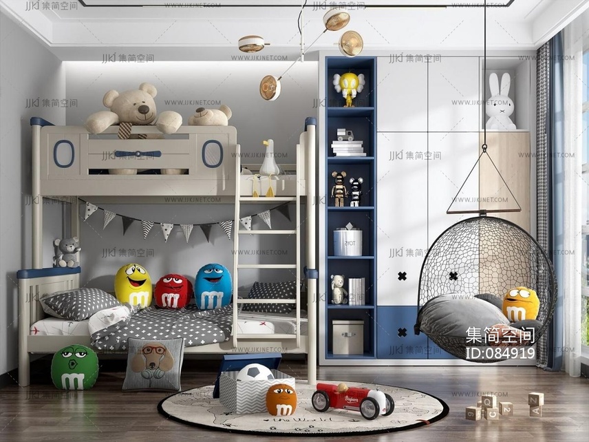 儿童房,玩具,吊椅,上下铺,地毯 3d模型下载 [模型ID:84919]