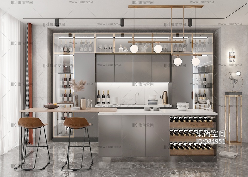 现代开放餐厅 3d模型下载 [模型ID:84951]