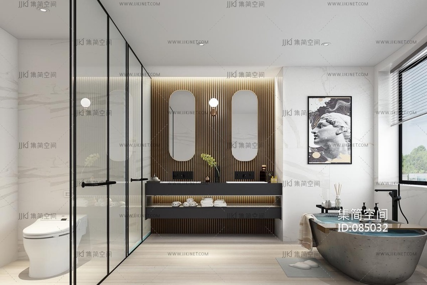 现代卫生间,洗漱用品外漏浴缸 3d模型下载 [模型ID:85032]