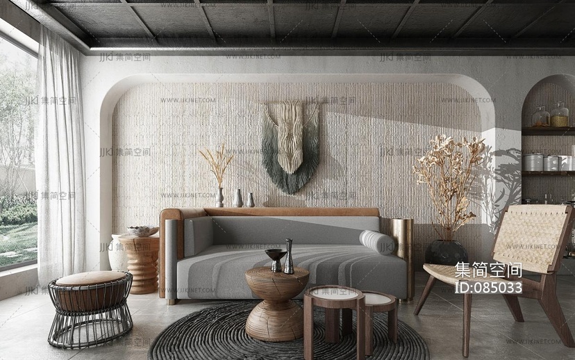 北欧现代自然风客厅 3d模型下载 [模型ID:85033]
