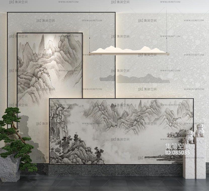 新中式山水屏风画 3d模型下载 [模型ID:85035]