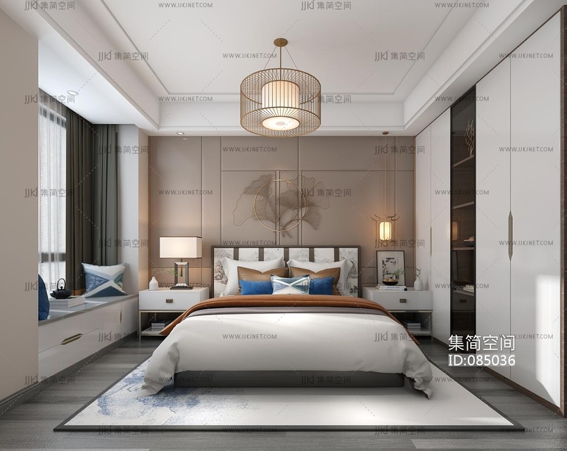 6法式中古家居卧室_主卧_飘窗卧室_高级灰卧室3D模型cr3d模型下载