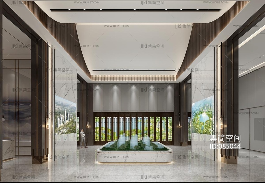 新中式售楼处入口大堂服务太接待台3D模型3d模型下载