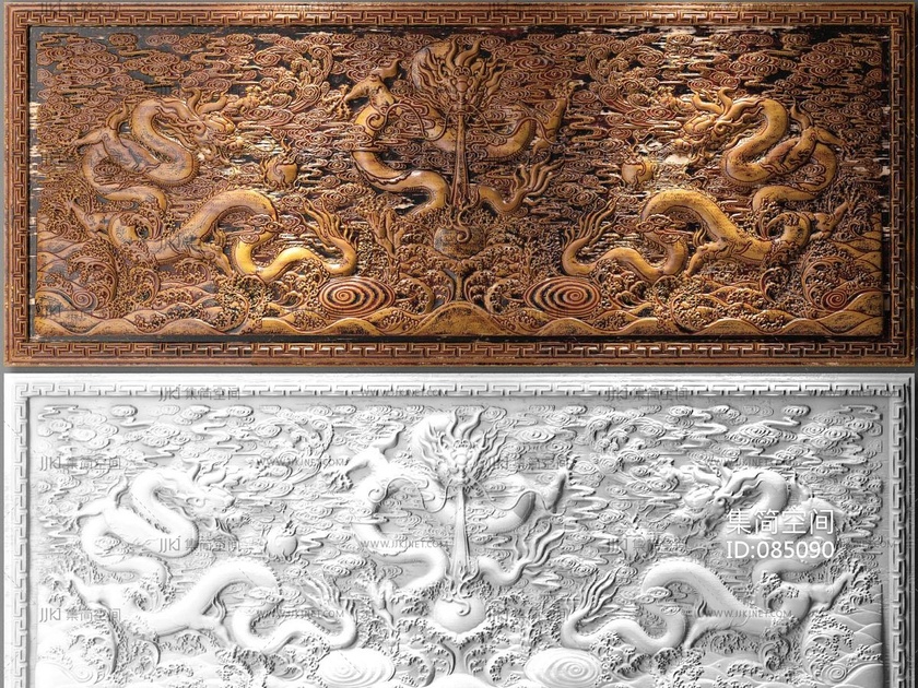 新中式龙戏珠实木 3d模型下载 [模型ID:85090]