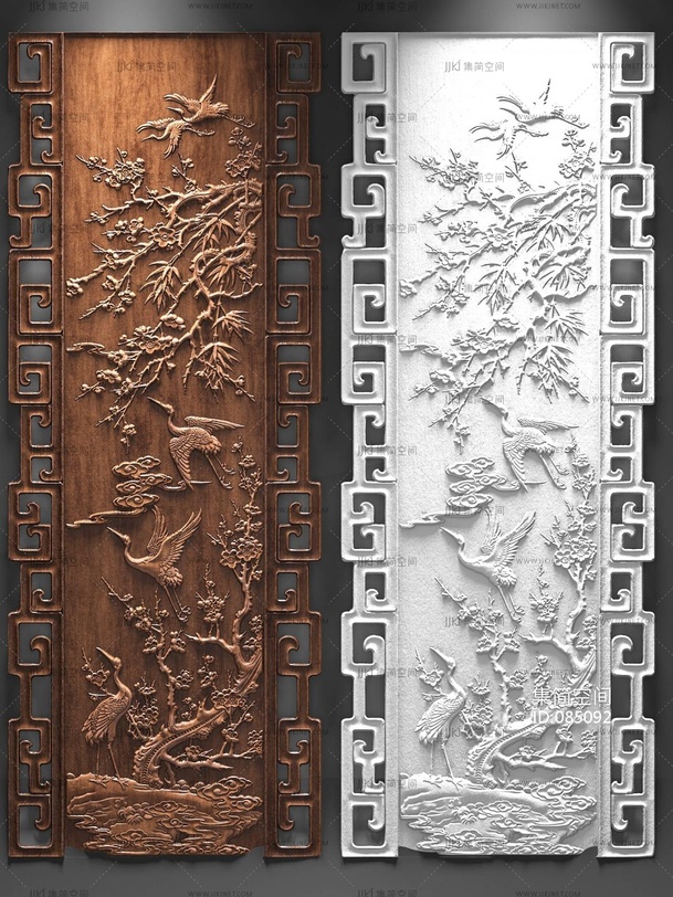 中式花鸟仙鹤,梅花实木, 3d模型下载 [模型ID:85092]