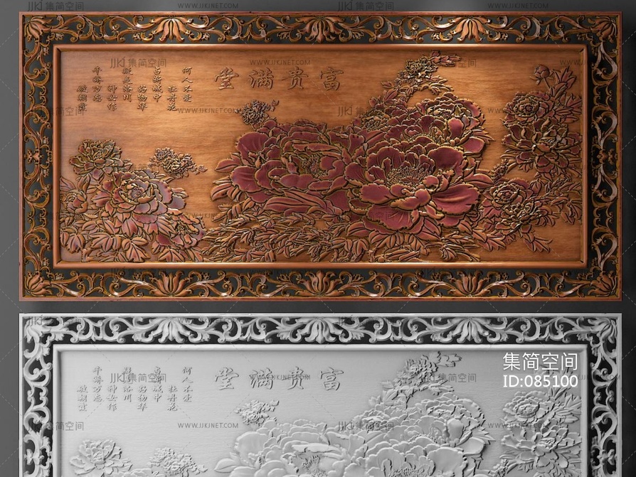 中式花开富贵牡丹花实木 3d模型下载 [模型ID:85100]