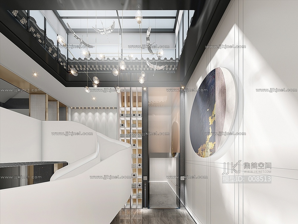 楼梯间石狮子天井中式檐口大雁吊饰旋转楼梯拴马桩 3d模型下载 [模型ID:8513]