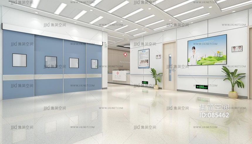 现代医院大厅过道走廊 3d模型下载 [模型ID:85462]