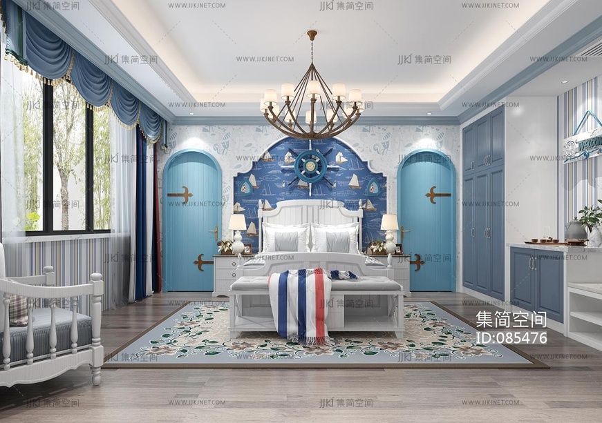 地中海卧室主人房,儿童房卧室双人床 3d模型下载 [模型ID:85476]