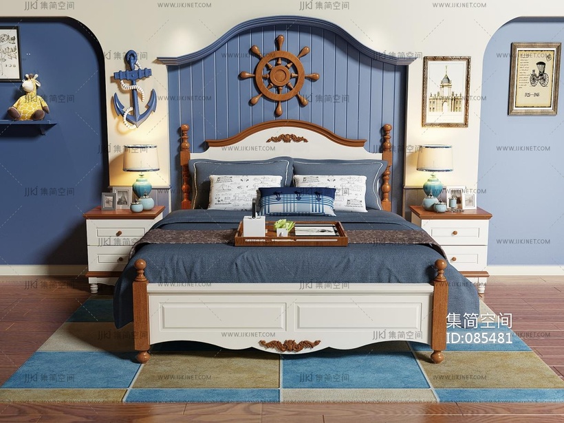 地中海双人床,卧室床头柜 3d模型下载 [模型ID:85481]