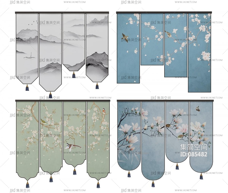 新中式布艺窗帘,卷帘 3d模型下载 [模型ID:85482]