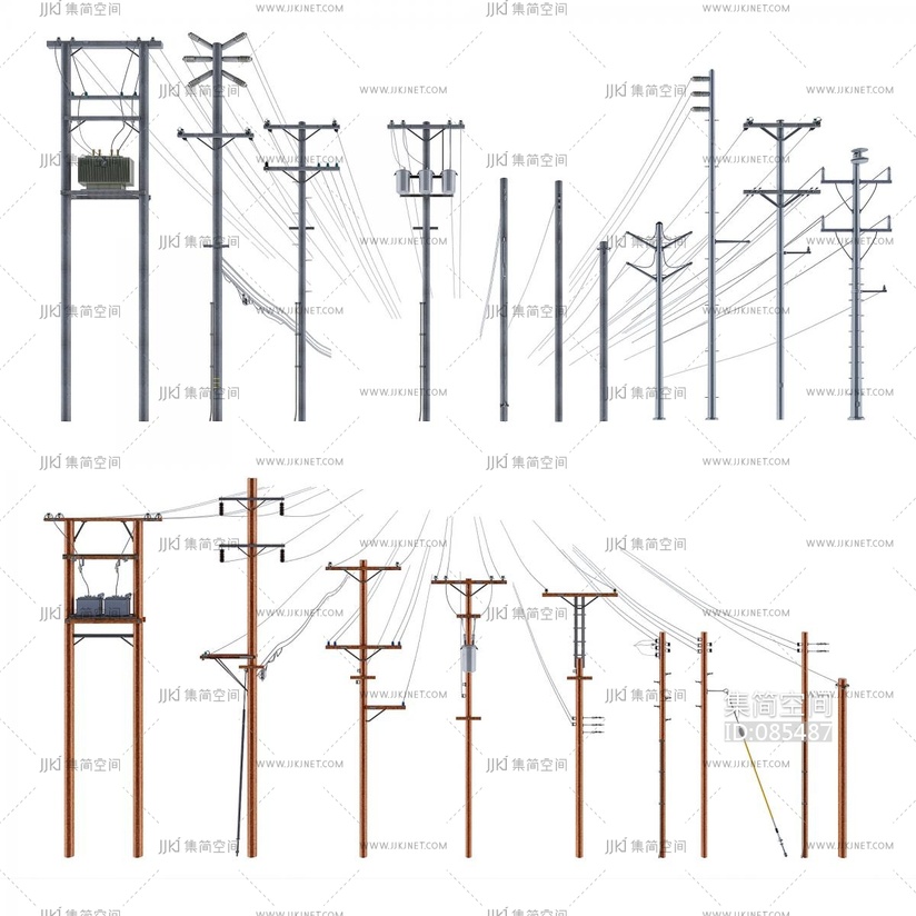 电线杆电力设施设备,线杆子 3d模型下载 [模型ID:85487]