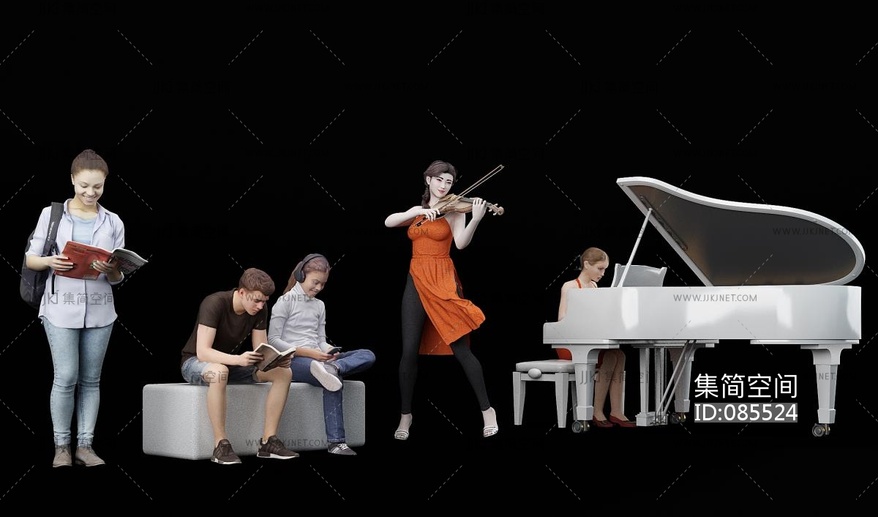 现代看书弹钢琴坐着人物 3d模型下载 [模型ID:85524]
