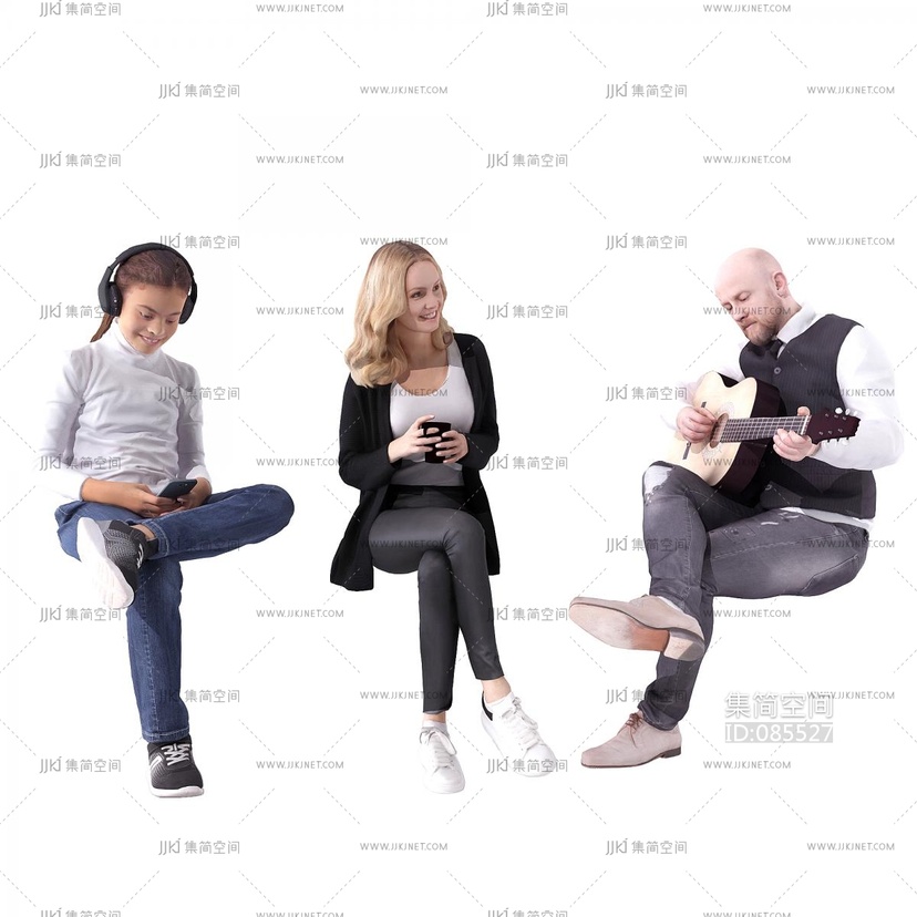 现代坐姿坐着的,弹吉他人物 3d模型下载 [模型ID:85527]