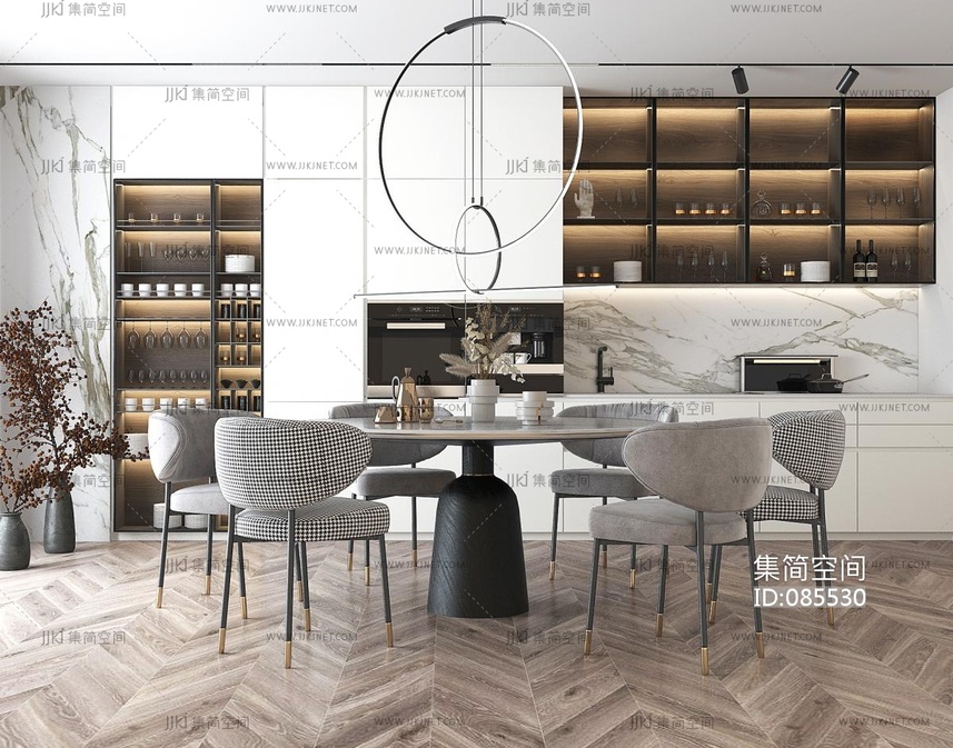 现代餐厅,餐桌椅 3d模型下载 [模型ID:85530]