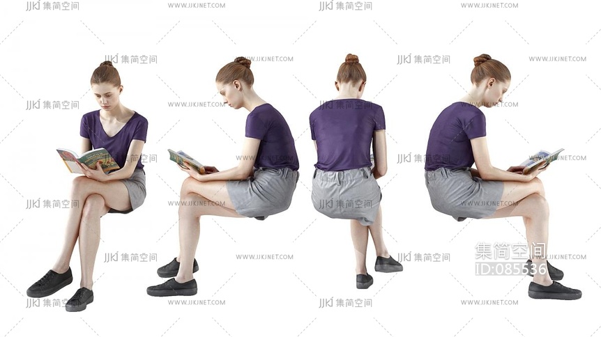 坐姿看书女人,人物 3d模型下载 [模型ID:85536]