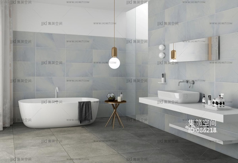 简约卫生间,外漏浴缸,台上盆洗漱用品 3d模型下载 [模型ID:86218]