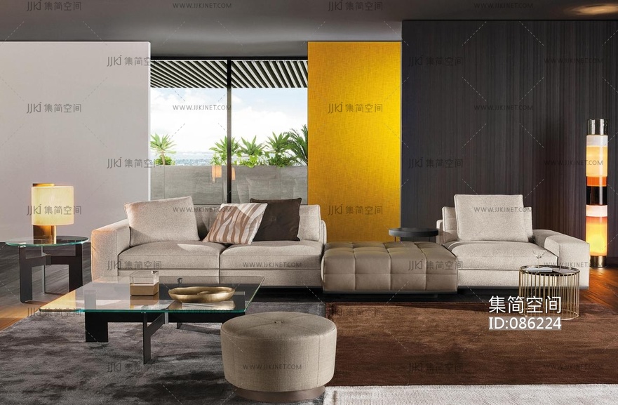 现代客厅,沙发玻璃茶几 3d模型下载 [模型ID:86224]