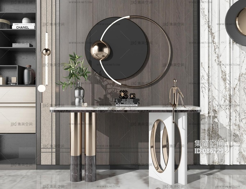 现代轻奢端景台,边柜玄关台摆件 3d模型下载 [模型ID:86229]