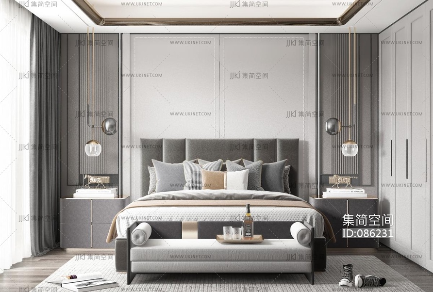 卧室,双人床,床尾凳榻,床头柜 3d模型下载 [模型ID:86231]