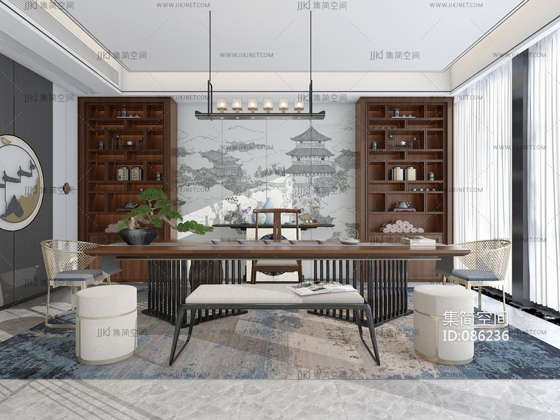 8新中式茶室, 3d模型下载 [模型ID:86236]