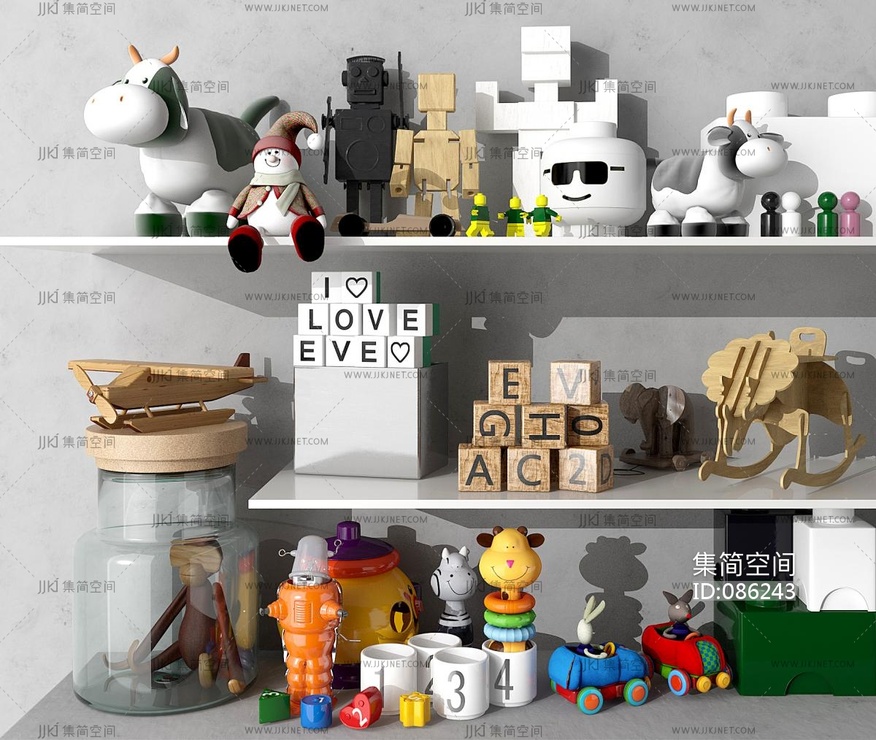 现代儿童玩具组合 3d模型下载 [模型ID:86243]