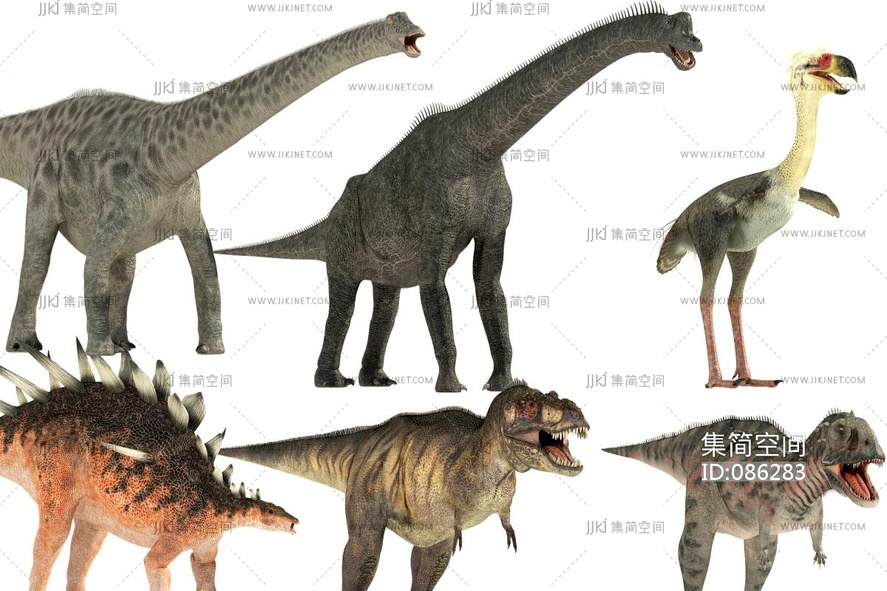 恐龙暴龙鸵鸟梁龙组合 3d模型下载 [模型ID:86283]
